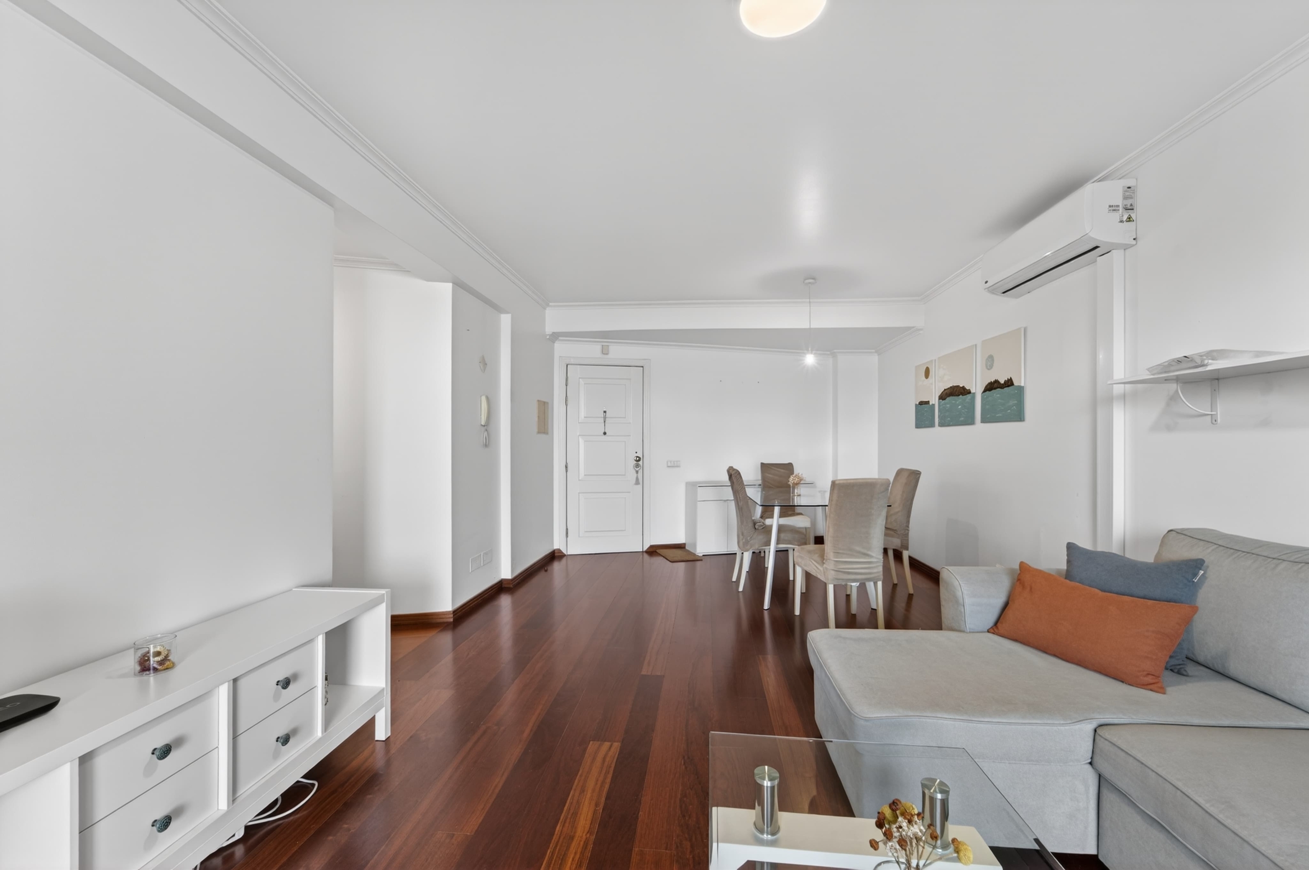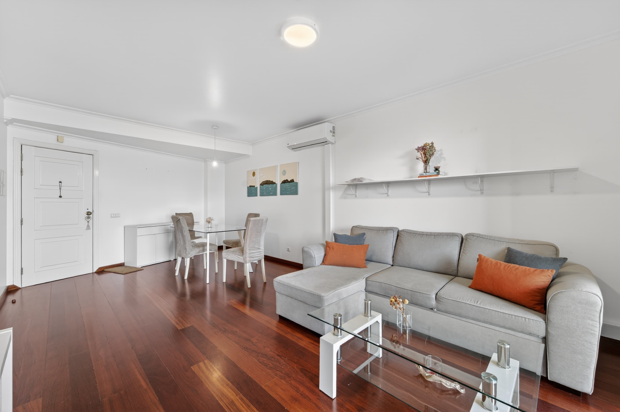 The apartment features a functional layout, prioritizing comfort and natural light. The living room is ideal for both everyday living and social moments, with direct access to the balcony.