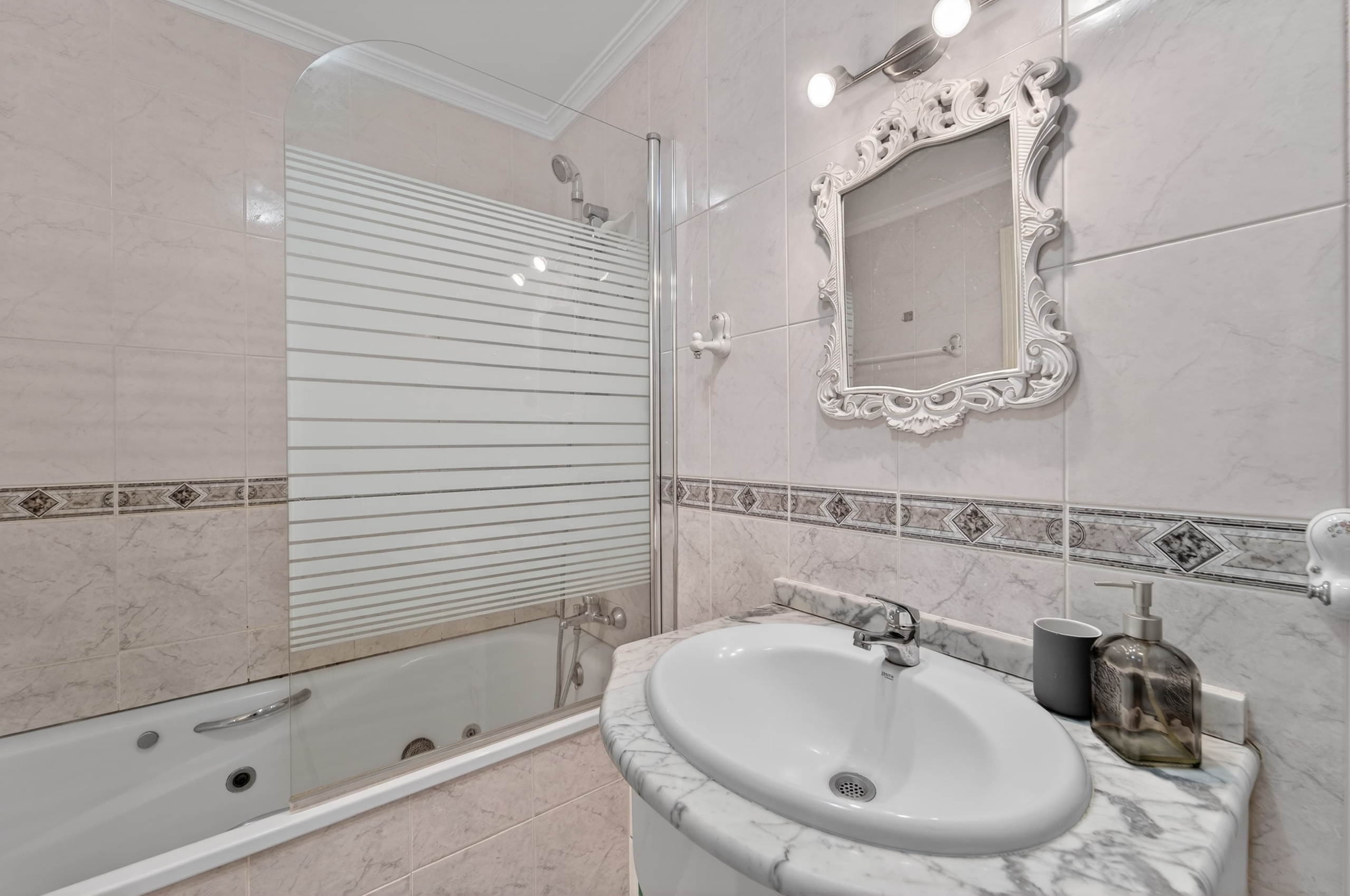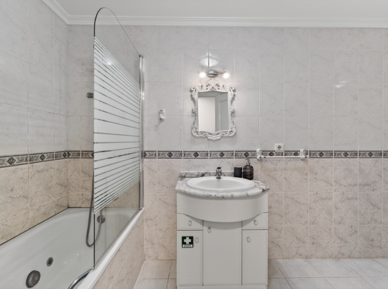 The apartment also includes a full bathroom with contemporary finishes and functional design.