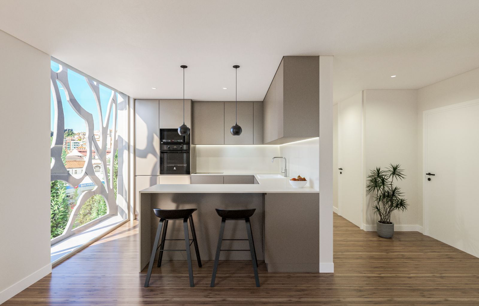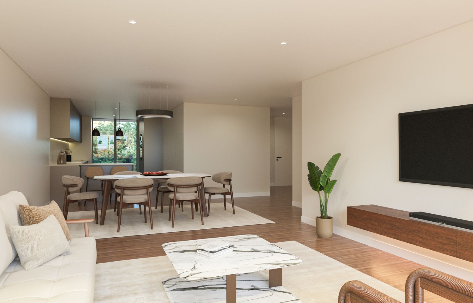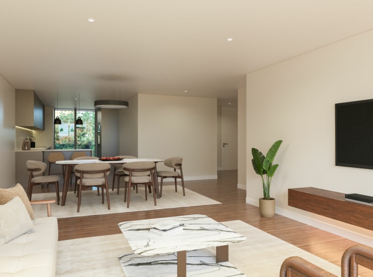 As amplas áreas interiores são um convite à vivência do espaço, proporcionando um ambiente espaçoso e arejado para os residentes. A estética da arquitetura e decoração é minimalista e pormenorizada, combinando elementos modernos com linhas limpas e elegantes. Cada detalhe foi cuidadosamente planejado para criar um ambiente sofisticado e contemporâneo.